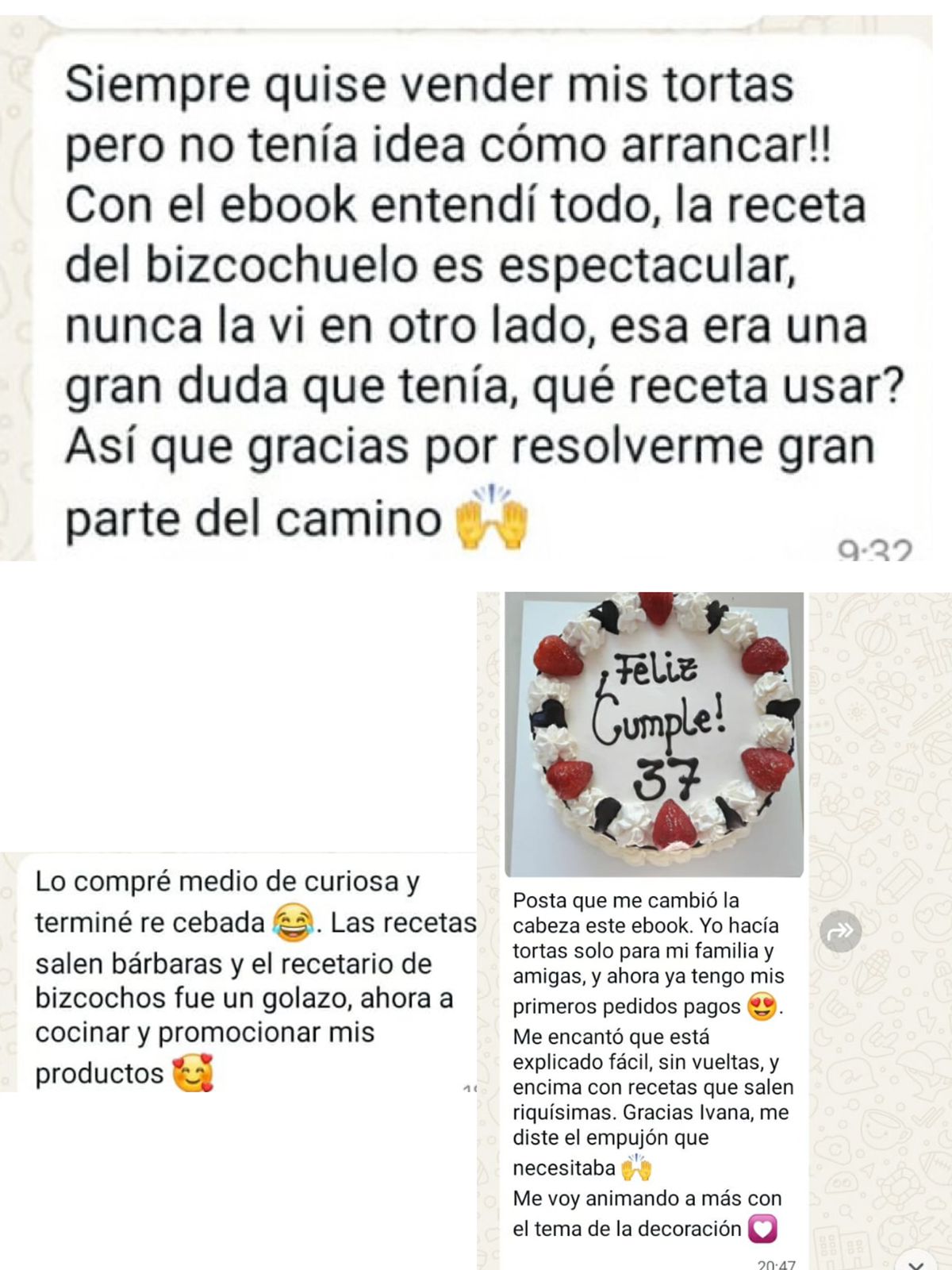 Por eso, durante unos días, podés acceder a Emprende con Tortas, el ebook que te enseña paso a paso cómo iniciar tu negocio de tortas desde tu casa, sin experiencia previa, con recetas, tips de precios, y estrategias de venta simples y efectivas, con un valor especial.